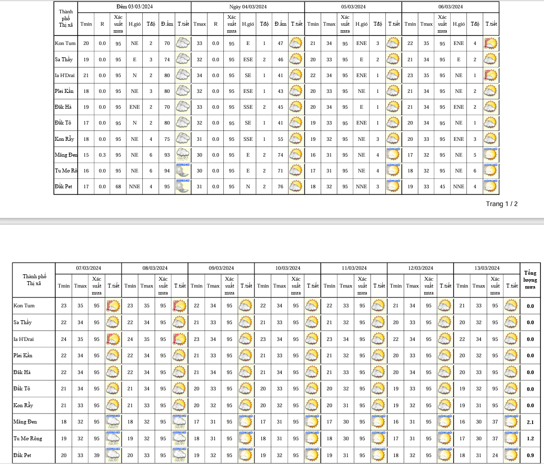 BẢN TIN DỰ BÁO, CẢNH BÁO THỜI TIẾT ĐIỂM ĐẾN 10 NGÀY KHU VỰC TỈNH KON TUM