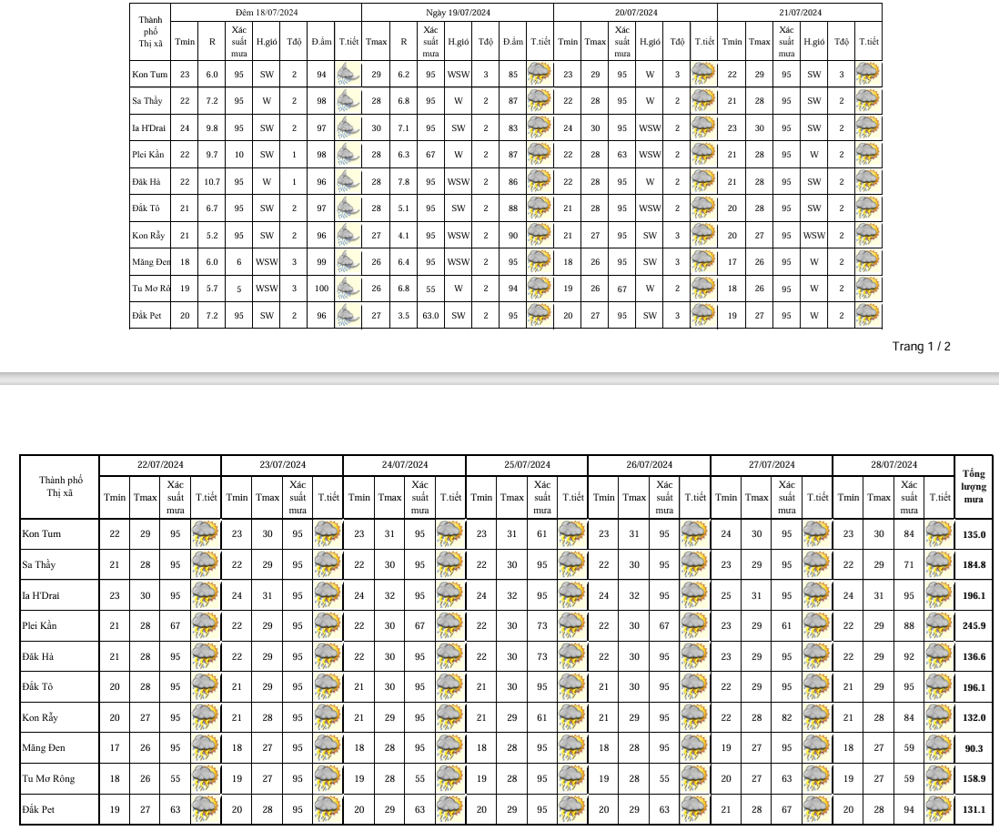 BẢN TIN DỰ BÁO, CẢNH BÁO THỜI TIẾT ĐIỂM ĐẾN 10 NGÀY KHU VỰC TỈNH KON TUM