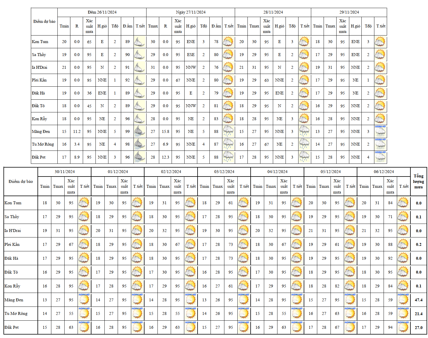 BẢN TIN DỰ BÁO, CẢNH BÁO THỜI TIẾT ĐIỂM ĐẾN 10 NGÀY KHU VỰC TỈNH KON TUM