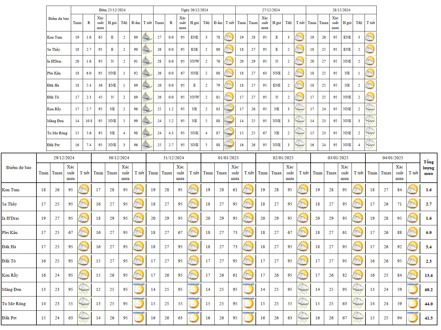 BẢN TIN DỰ BÁO, CẢNH BÁO THỜI TIẾT ĐIỂM ĐẾN 10 NGÀY KHU VỰC TỈNH KON TUM