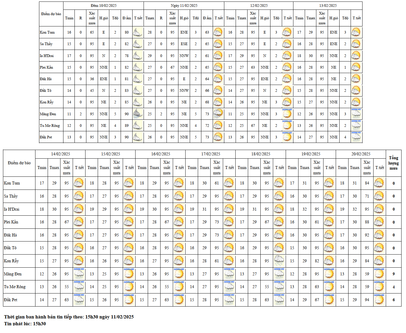 BẢN TIN DỰ BÁO, CẢNH BÁO THỜI TIẾT ĐIỂM ĐẾN 10 NGÀY KHU VỰC TỈNH KON TUM
