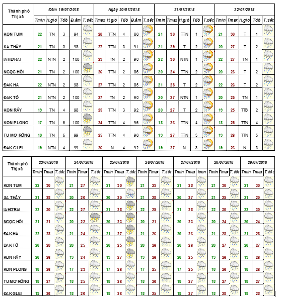 BẢN TIN DỰ BÁO THỜI TIẾT CÁC HUYỆN TỪ NGAY 25 ĐẾN NGÀY 03 THÁNG 8 NĂM 2018