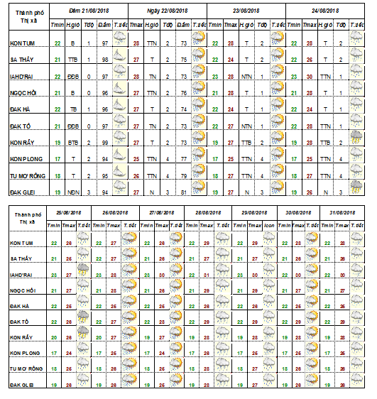 BẢN TIN DỰ BÁO THỜI TIẾT CÁC HUYỆN TỪ NGÀY 20 ĐẾN NGÀY 29 THÁNG 8 NĂM 2018