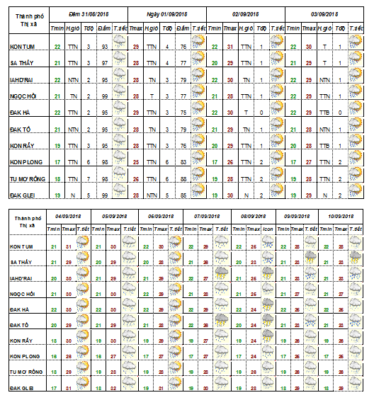 BẢN TIN DỰ BÁO THỜI TIẾT CÁC HUYỆN TỪ NGÀY 02 ĐẾN NGÀY 11 THÁNG 9 NĂM 2018