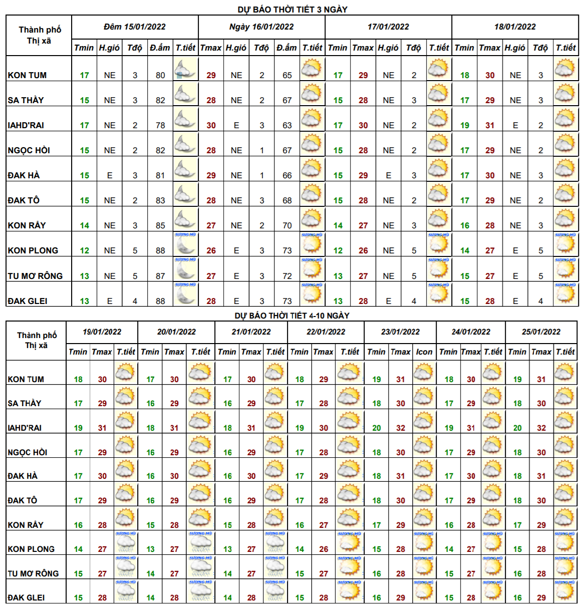Nguồn tin: Đài Khí tượng Thuỷ văn tỉnh Kon Tum