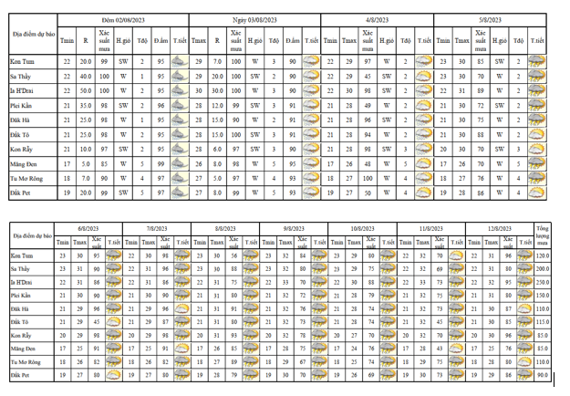 BẢN TIN DỰ BÁO, CẢNH BÁO THỜI TIẾT ĐIỂM ĐẾN 10 NGÀY KHU VỰC TỈNH KON TUM