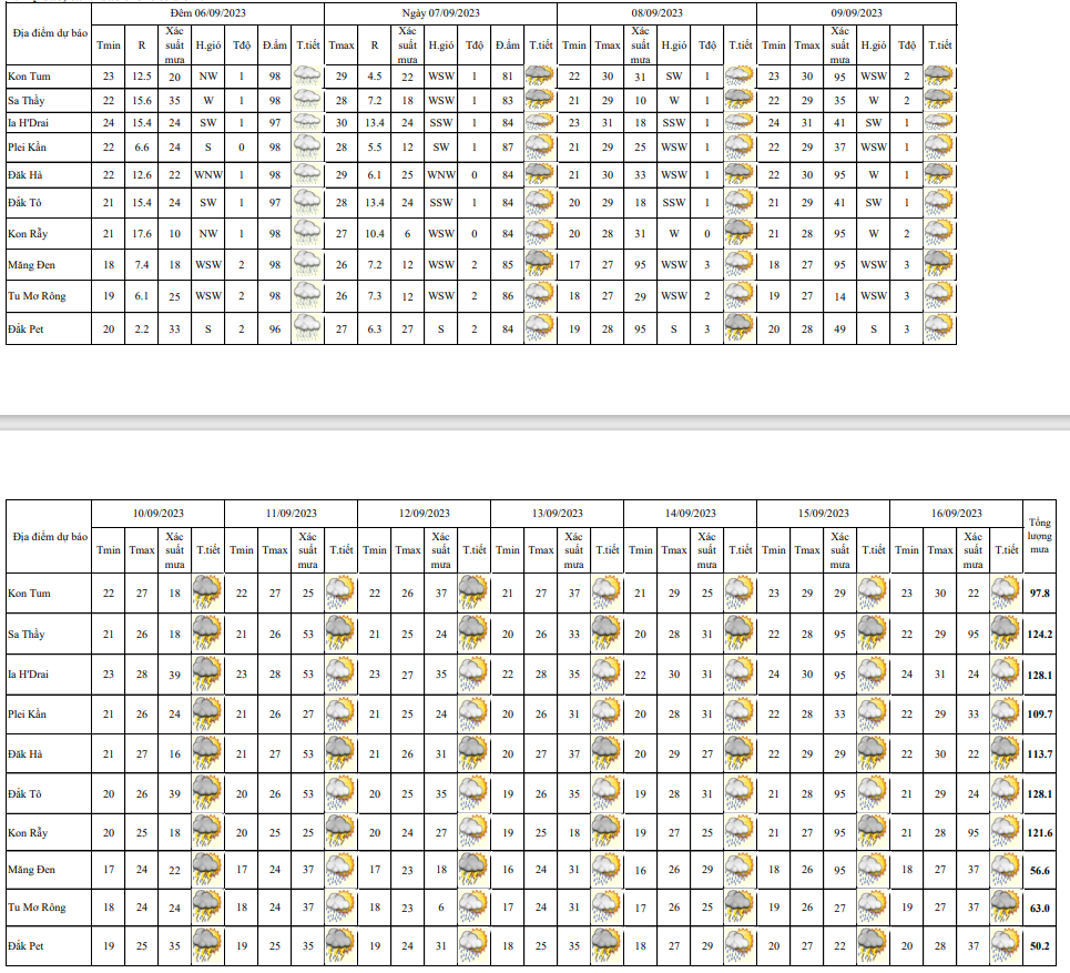 BẢN TIN DỰ BÁO, CẢNH BÁO THỜI TIẾT ĐIỂM ĐẾN 10 NGÀY KHU VỰC TỈNH KON TUM