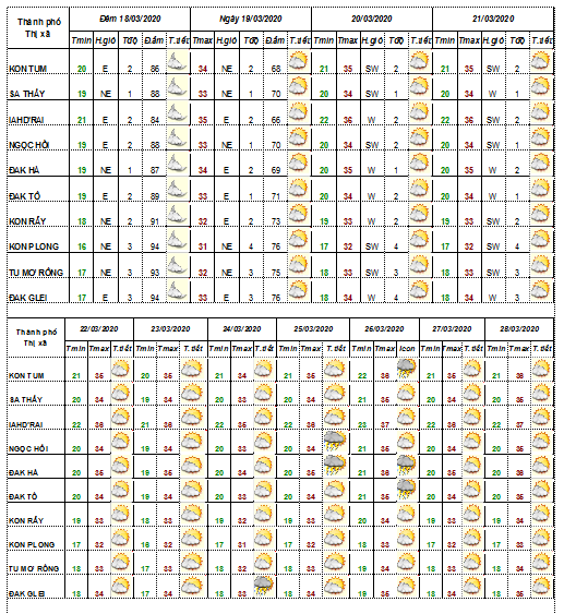 BẢN TIN THỜI TIẾT CÁC HUYỆN VÀ TP KON TUM TRONG 10 NGÀY TỚI