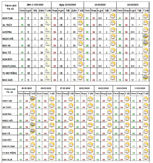 BẢN TIN THỜI TIẾT CÁC HUYỆN VÀ TP KON TUM TRONG 10 NGÀY TỚI