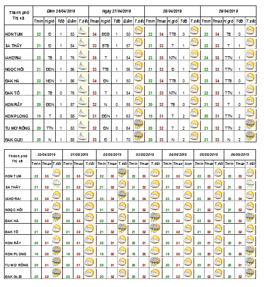 BẢN TIN DỰ BÁO THỜI TIẾT ĐIỂM CÁC HUYỆN ĐẾN 10 NGÀY.