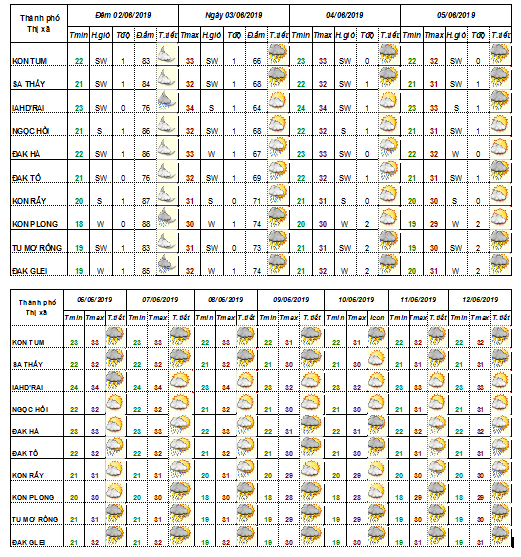 DỰ BÁO THỜI TIẾT TỈNH KON TUM ĐÊM 03 NGÀY 04 THÁNG 6 NĂM 2019