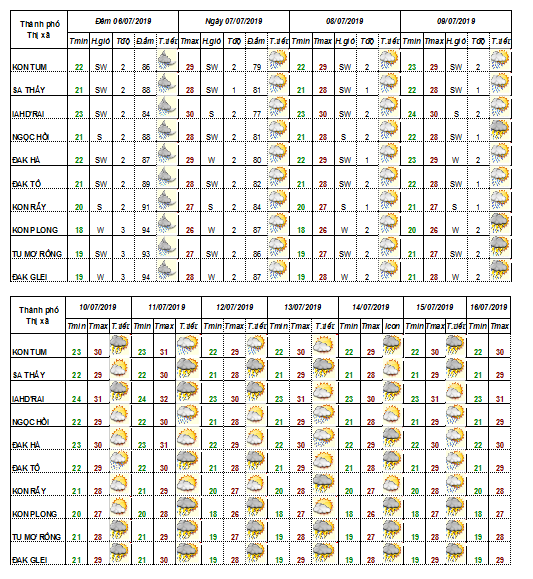 BẢN TIN THỜI TIẾT HUYỆN ĐẾN 10 NGÀY