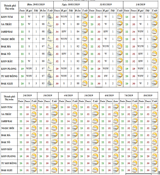 DỰ BÁO THỜI TIẾT TỈNH KON TUM ĐÊM 03 NGÀY 04 THÁNG 6 NĂM 2019