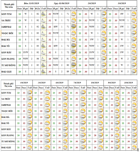 DỰ BÁO THỜI TIẾT TỈNH KON TUM ĐÊM 03 NGÀY 04 THÁNG 6 NĂM 2019