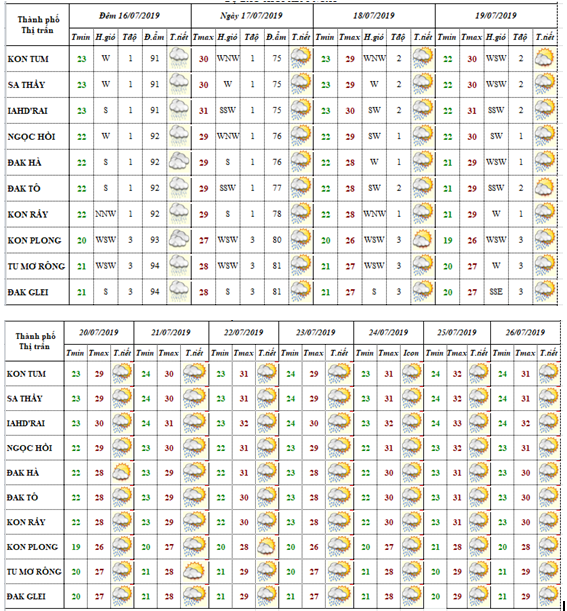 BẢN TIN THỜI TIẾT HUYỆN ĐẾN 10 NGÀY
