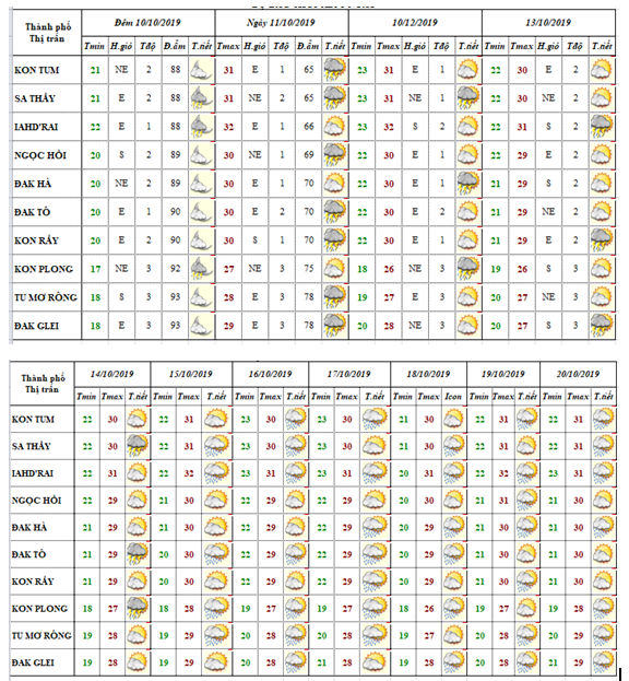 BẢN TIN DỰ BÁO THỜI TIẾT CÁC HUYỆN VÀ TP. KON TUM TRONG 10 NGÀY TỚI
