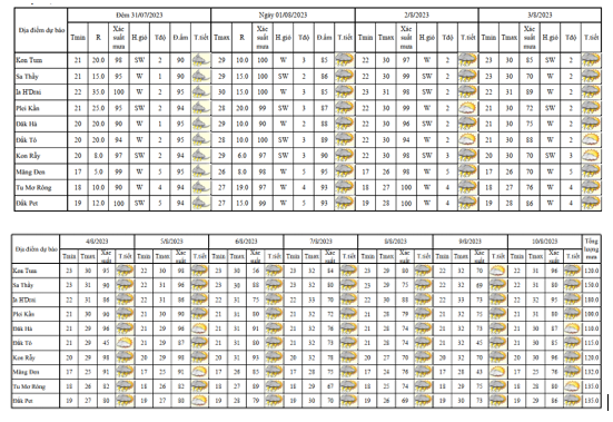BẢN TIN DỰ BÁO, CẢNH BÁO THỜI TIẾT ĐIỂM ĐẾN 10 NGÀY KHU VỰC TỈNH KON TUM