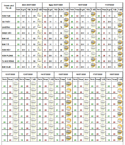 DỰ BÁO THỜI TIẾT TỈNH KON TUM ĐÊM 09 NGÀY 10 THÁNG 07 NĂM 2020