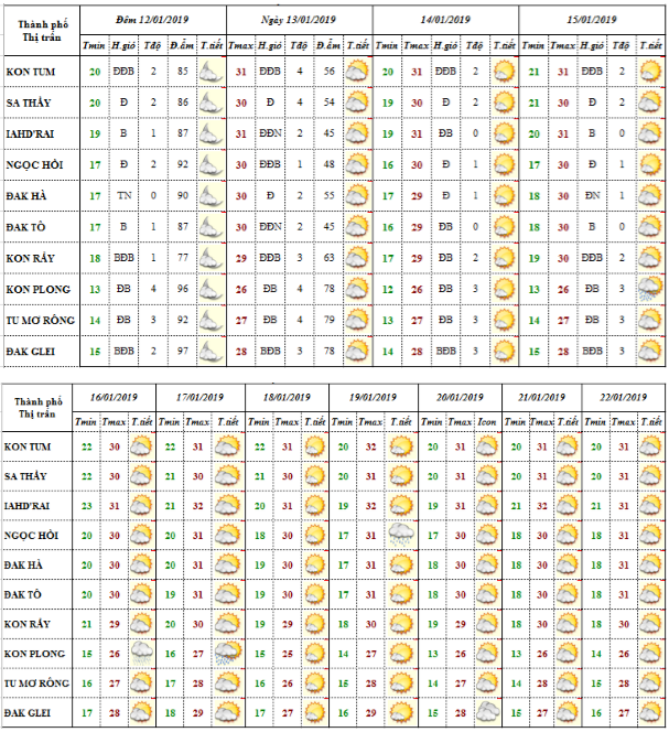 BẢN TIN DỰ BÁO THỜI TIẾT ĐIỂM TỪ NGÀY 13 ĐẾN NGÀY 22 THÁNG 01 NĂM 2019