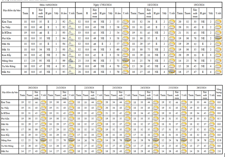 BẢN TIN DỰ BÁO THỜI TIẾT, THỦY VĂN TỈNH KON TUM Đêm 16 ngày 17 tháng 02 năm 2024