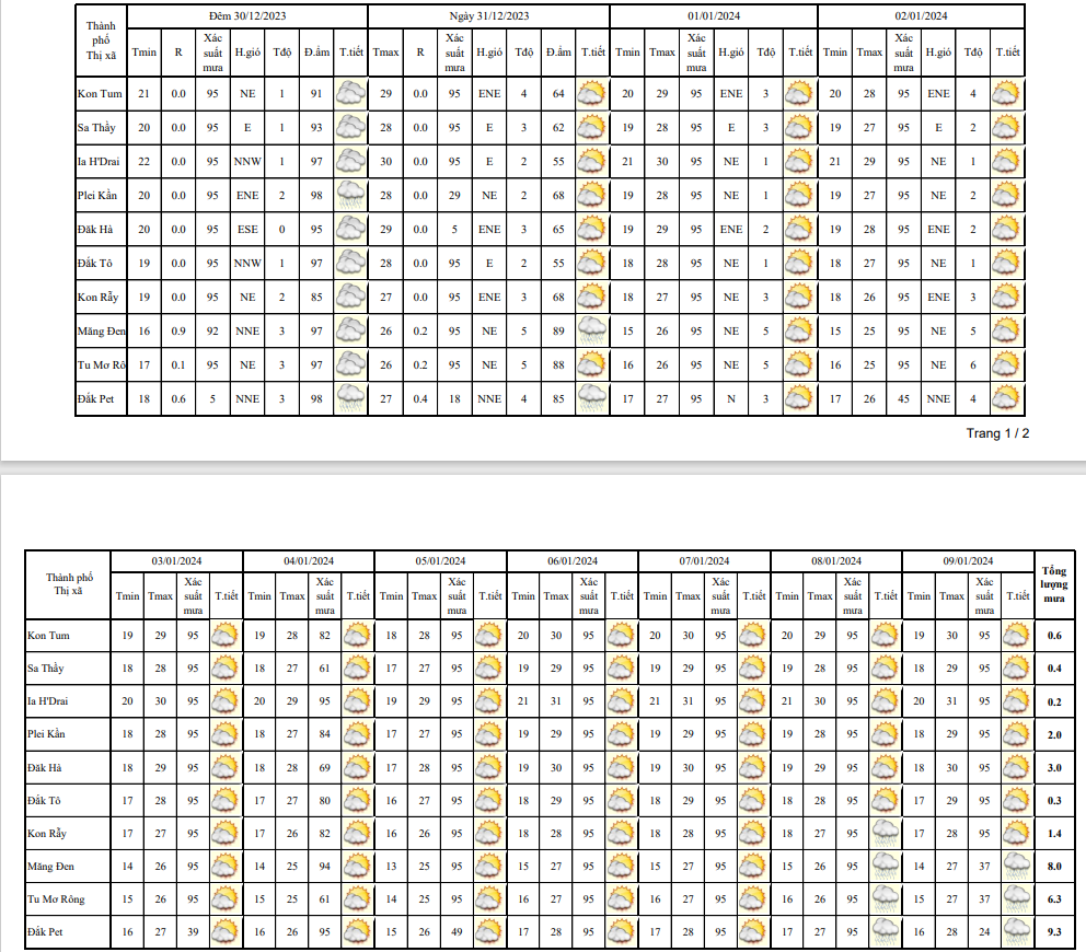 BẢN TIN DỰ BÁO THỜI TIẾT, THỦY VĂN TỈNH KON TUM Đêm 29 ngày 30 tháng 12 năm 2023