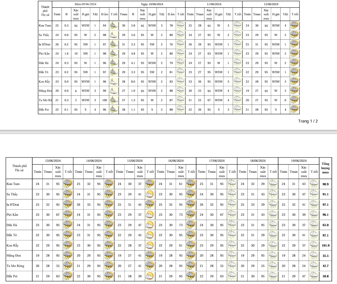 BẢN TIN DỰ BÁO, CẢNH BÁO THỜI TIẾT ĐIỂM ĐẾN 10 NGÀY KHU VỰC TỈNH KON TUM