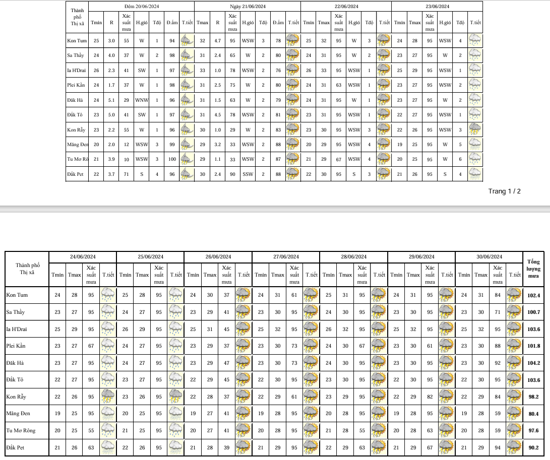 BẢN TIN DỰ BÁO, CẢNH BÁO THỜI TIẾT ĐIỂM ĐẾN 10 NGÀY KHU VỰC TỈNH KON TUM