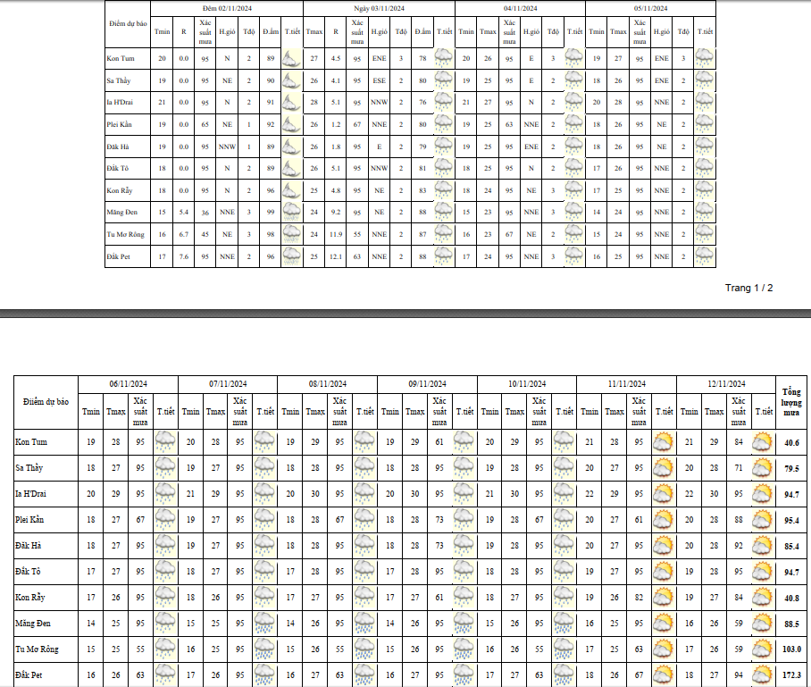 BẢN TIN DỰ BÁO, CẢNH BÁO THỜI TIẾT ĐIỂM ĐẾN 10 NGÀY KHU VỰC TỈNH KON TUM