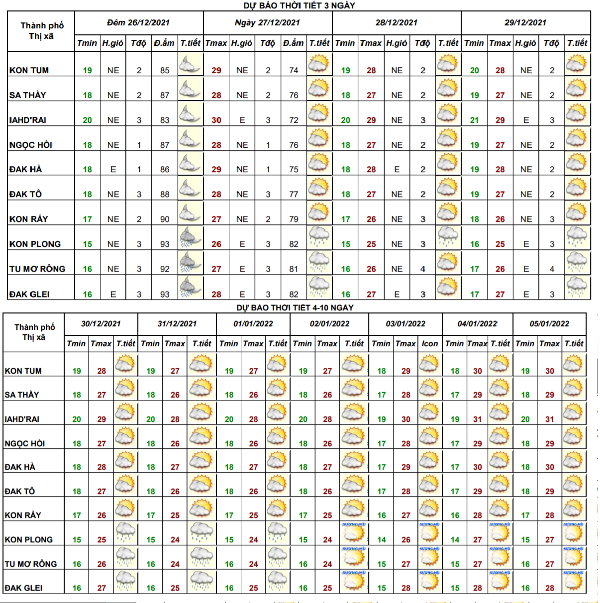 BẢN TIN DỰ BÁO THỜI TIẾT, THỦY VĂN TỈNH KON TUM Đêm 29 ngày 30 tháng 12 năm 2021