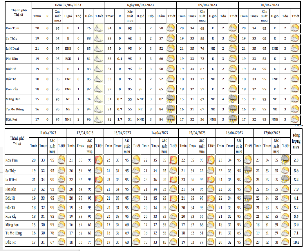 BẢN TIN DỰ BÁO THỜI TIẾT, THỦY VĂN TỈNH KON TUM Đêm 10 ngày 11 tháng 04 năm 2023