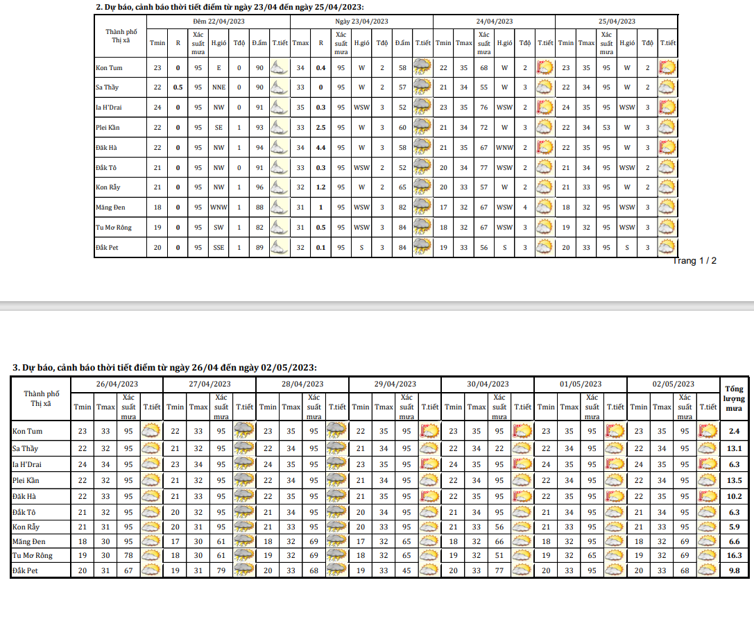 BẢN TIN DỰ BÁO THỜI TIẾT, THỦY VĂN TỈNH KON TUM Đêm 24 ngày 25 tháng 04 năm 2023