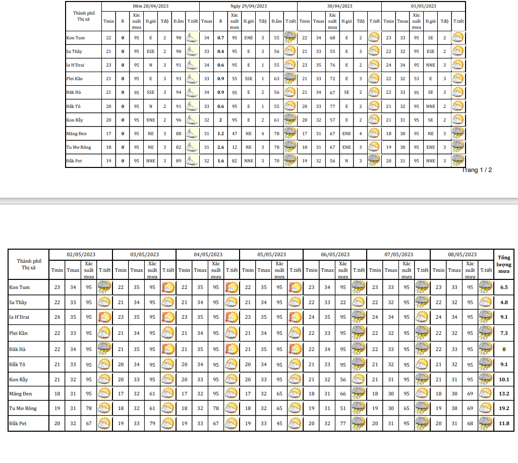 BẢN TIN DỰ BÁO THỜI TIẾT, THỦY VĂN TỈNH KON TUM Đêm 30.4 ngày 01 tháng 05 năm 2023