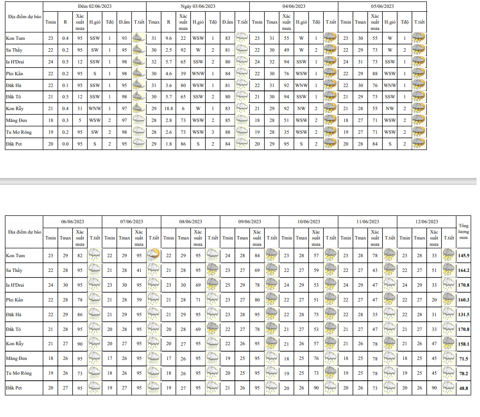 BẢN TIN DỰ BÁO THỜI TIẾT, THỦY VĂN TỈNH KON TUM Đêm 31.5 ngày 01 tháng 06 năm 2023