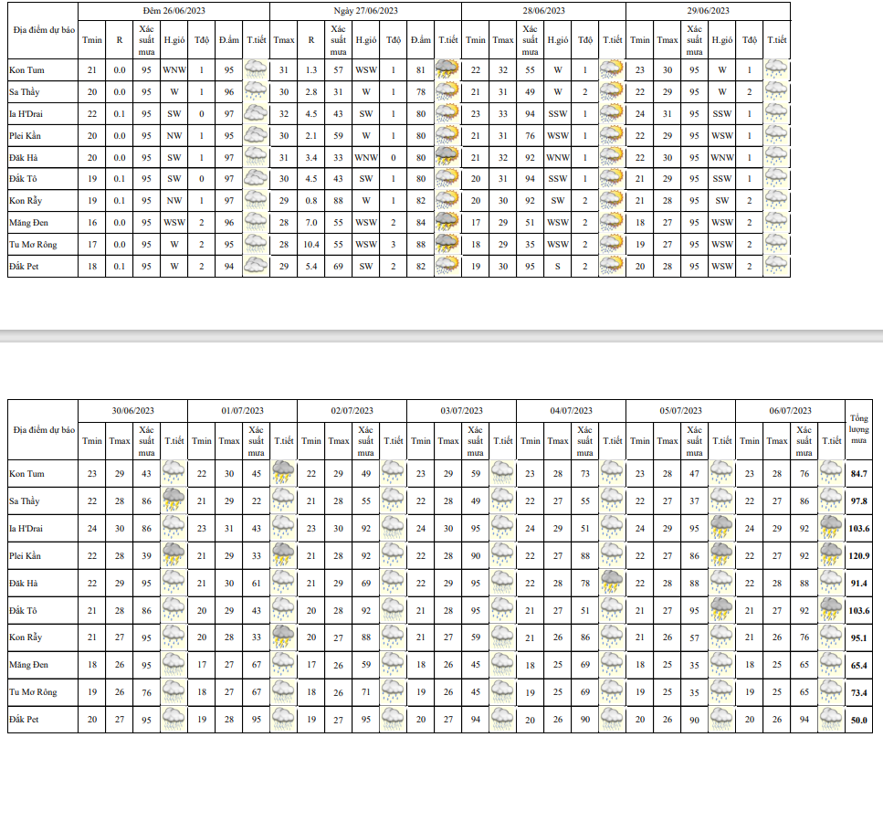 BẢN TIN DỰ BÁO THỜI TIẾT, THỦY VĂN TỈNH KON TUM Đêm 27 ngày 28 tháng 06 năm 2023