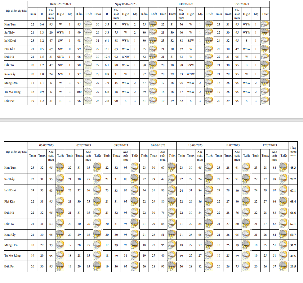 BẢN TIN DỰ BÁO THỜI TIẾT, THỦY VĂN TỈNH KON TUM Đêm 05 ngày 06 tháng 07 năm 2023