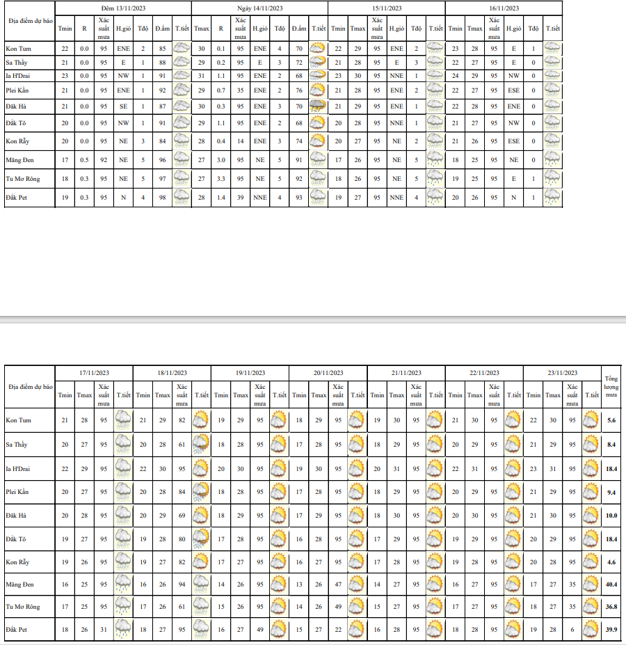 BẢN TIN DỰ BÁO THỜI TIẾT, THỦY VĂN TỈNH KON TUM Đêm 12 ngày 13 tháng 11 năm 2023