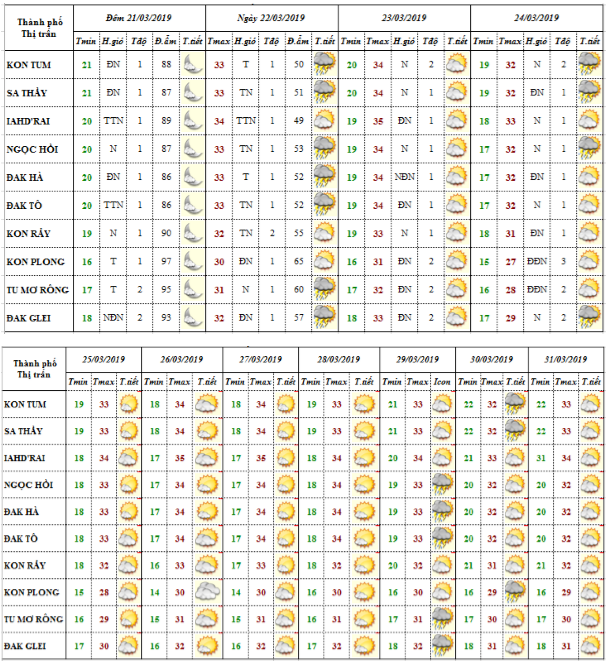 BẢN TIN DỰ BÁO THỜI TIẾT ĐIỂM TỪ NGÀY 22 ĐẾN NGÀY 31 THÁNG 3 NĂM 2019