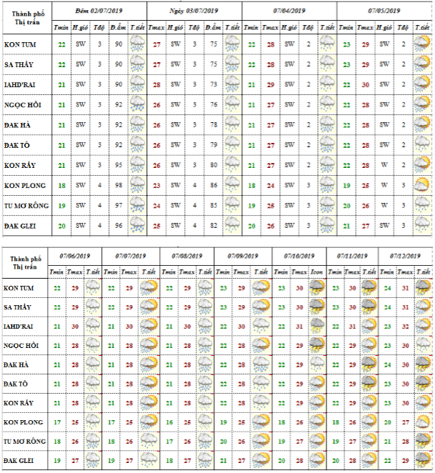 DỰ BÁO THỜI TIẾT TỈNH KON TUM ĐÊM 02 NGÀY 03 THÁNG 7 NĂM 2019