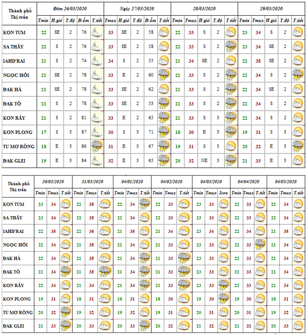 BẢN TIN DỰ BÁO THỜI TIẾT TỪ NGÀY 27.3 ĐẾN NGÀY 05 THÁNG 4 NĂM 2020