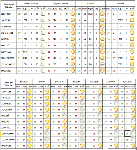DỰ BÁO KHÍ TƯỢNG THUỶ VĂN TỪ NGÀY 01 ĐẾN NGÀY 10 THÁNG 3 NĂM 2019 CÁC KHU VỰC TRÊN PHẠM VI TỈNH KON TUM
