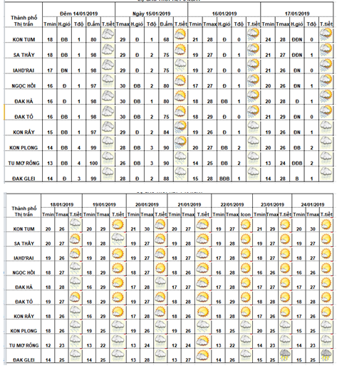 DỰ BÁO KHÍ TƯỢNG THUỶ VĂN TỪ NGÀY 11 ĐẾN NGÀY 20 THÁNG 01 NĂM 2019 CÁC KHU VỰC TRÊN PHẠM VI TỈNH KON TUM