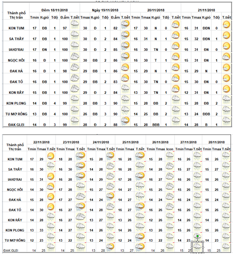 DỰ BÁO THỜI TIẾT TỈNH KON TUM ĐÊM 18 NGÀY 19 THÁNG 11 NĂM 2018