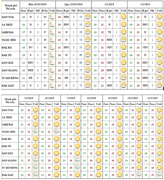 DỰ BÁO KHÍ TƯỢNG THUỶ VĂN TỪ NGÀY 01 ĐẾN NGÀY 10 THÁNG 02 NĂM 2019 CÁC KHU VỰC TRÊN PHẠM VI TỈNH KON TUM