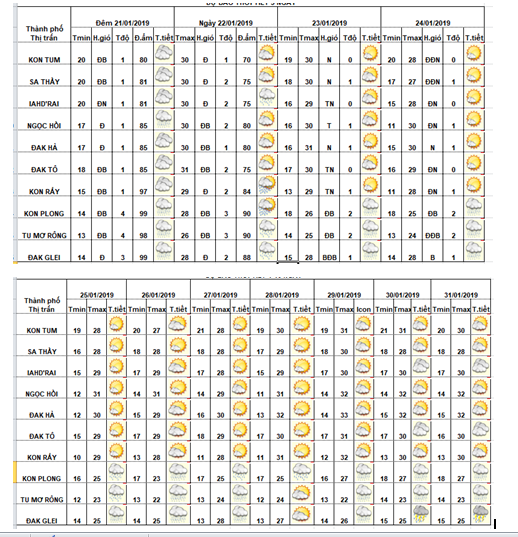 DỰ BÁO KHÍ TƯỢNG THUỶ VĂN TỪ NGÀY 21 ĐẾN NGÀY 31 THÁNG 01 NĂM 2019 CÁC KHU VỰC TRÊN PHẠM VI TỈNH KON TUM