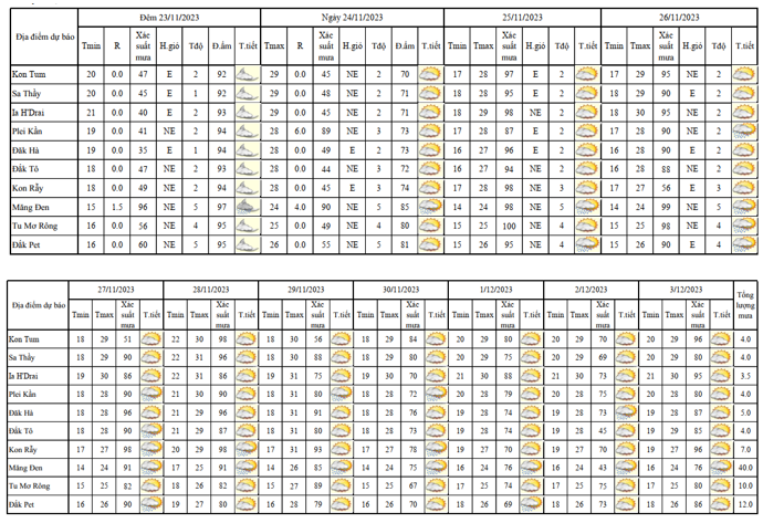BẢN TIN DỰ BÁO THỜI TIẾT, THỦY VĂN TỈNH KON TUM Đêm 23 ngày 24 tháng 11 năm 2023
