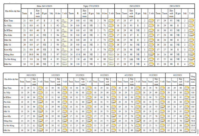 BẢN TIN DỰ BÁO THỜI TIẾT, THỦY VĂN TỈNH KON TUM Đêm 28 ngày 29 tháng 11 năm 2023