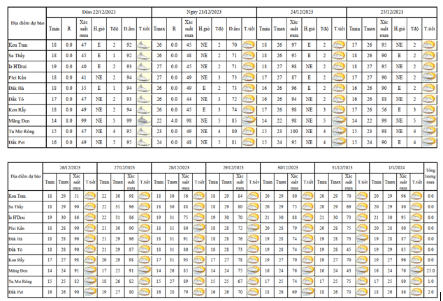 BẢN TIN DỰ BÁO THỜI TIẾT, THỦY VĂN TỈNH KON TUM Đêm 22 ngày 23 tháng 12 năm 2023