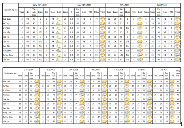 BẢN TIN DỰ BÁO THỜI TIẾT, THỦY VĂN TỈNH KON TUM Đêm 23 ngày 24 tháng 12 năm 2023