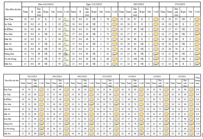 BẢN TIN DỰ BÁO THỜI TIẾT, THỦY VĂN TỈNH KON TUM Đêm 24 ngày 25 tháng 12 năm 2023