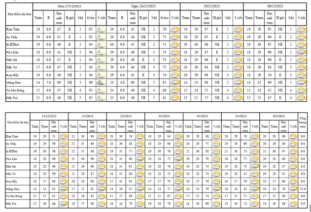 BẢN TIN DỰ BÁO THỜI TIẾT, THỦY VĂN TỈNH KON TUM Đêm 29 ngày 30 tháng 12 năm 2023